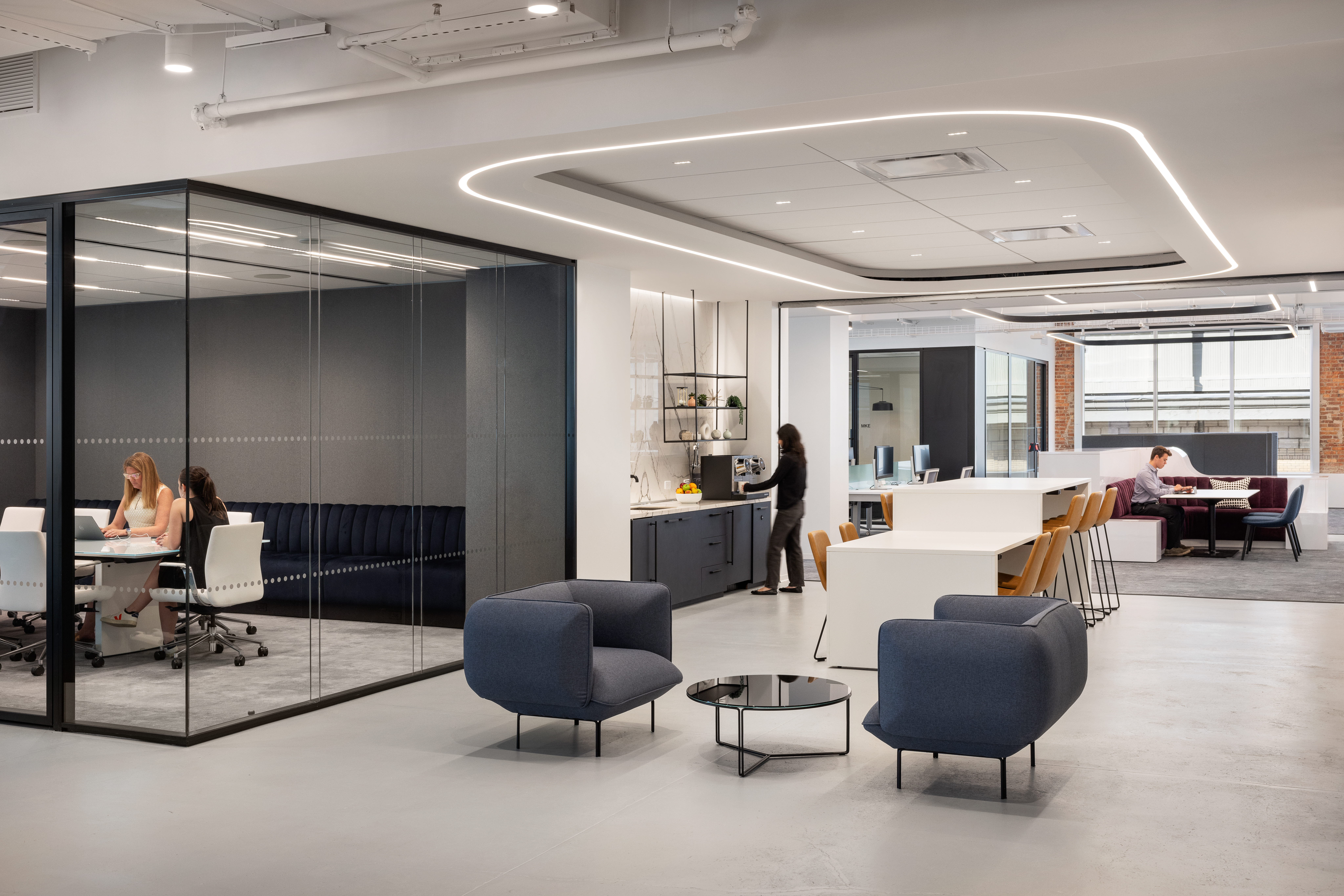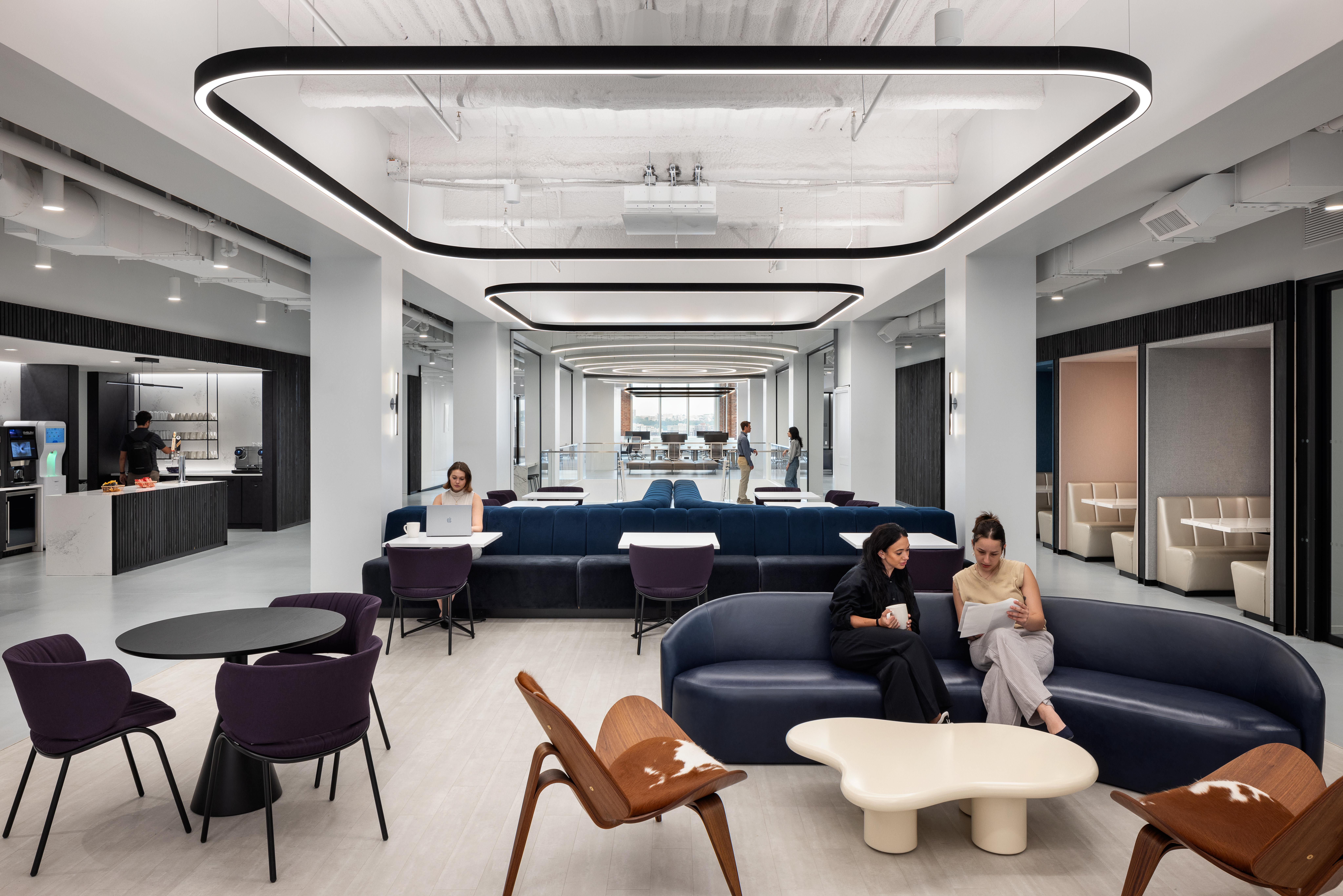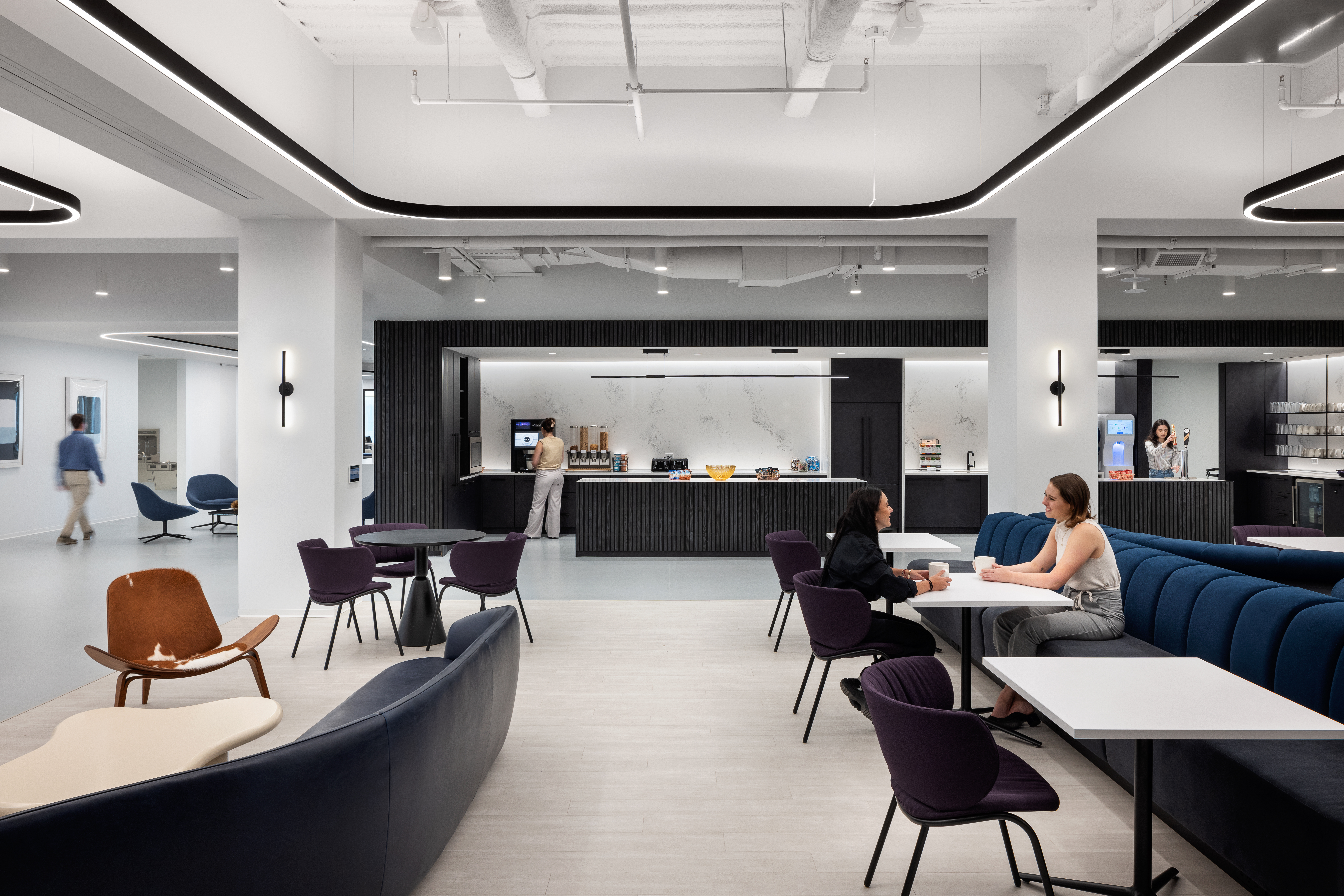 Each floor features a full pantry and coffee bar, along with a library for focused work, hospitality-inspired gathering spaces, and sweeping waterfront views, providing a personalized work environment for every individual. The project was recognized as a finalist for Interior Design’s Best of Year Awards.